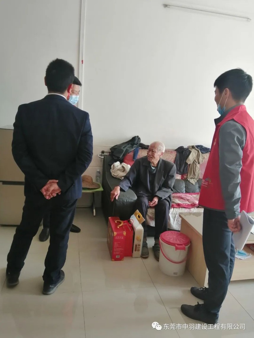 喜迎新春!东莞市中羽建设工程有限公司,前往沙田镇䲞沙社区送新春温暖!关爱老人是中华民族的传统美德,为倡导关心老人、照顾老人、爱护老人,拟在2022年春节前夕,公司组织前往东莞市沙田镇䲞沙社区看望高龄老人,使老年人体会到社会大家庭的关怀和温暖。